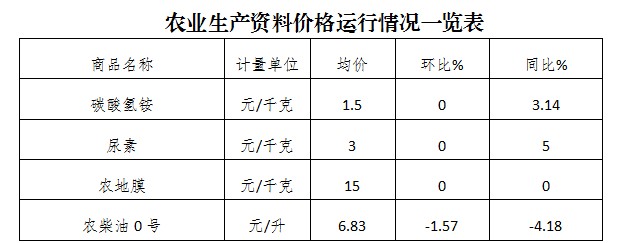 五、农业生产资料价格运行平稳。