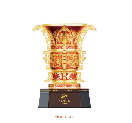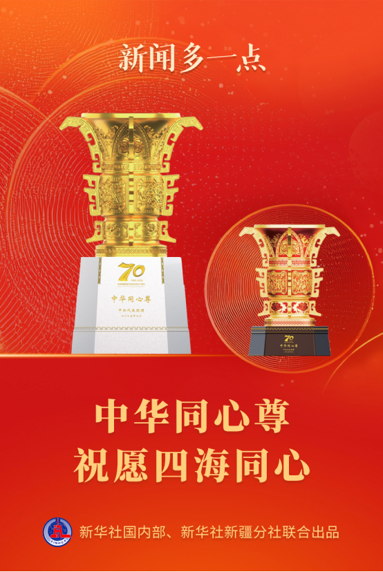 据了解,中华同心尊共分大小两种形态。大尊尊体内外为金色贴金工艺制作,小尊则采取贴金及红色描漆工艺。中央代表团此次向新疆维吾尔自治区赠送中华同心尊(大)1个;分别向新疆维吾尔自治区各地州市、新疆生产建设兵团各师市赠送中华同心尊(小)1个。