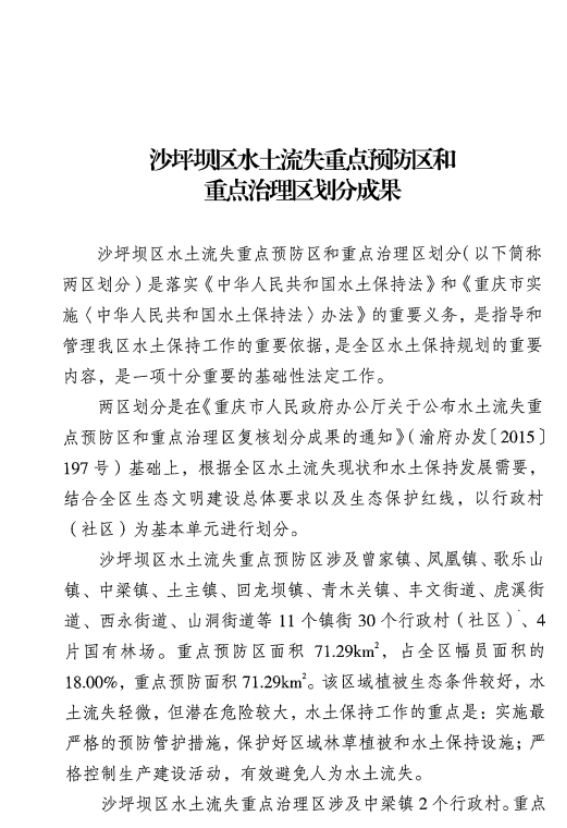 | 名称: | 沙坪坝区水土流失重点预防区和重点治理区划分成果 | ||||