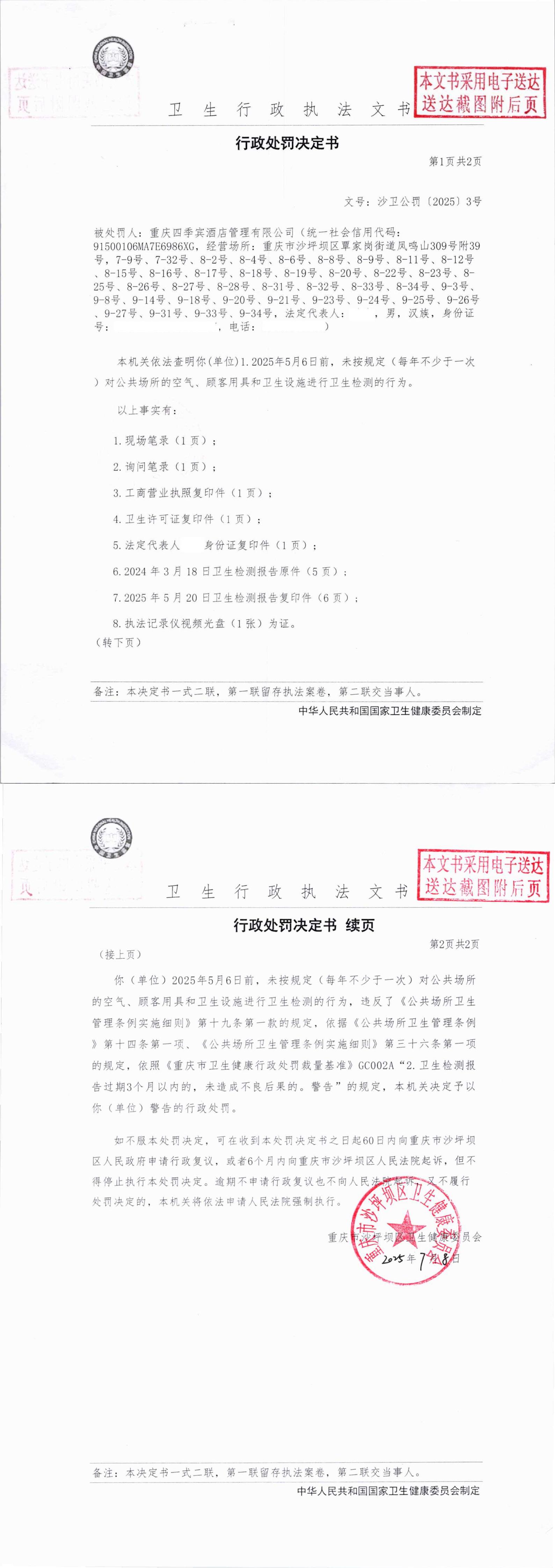 | 名称: | 行政处罚决定书 .沙卫公罚〔2025〕3号 | ||||