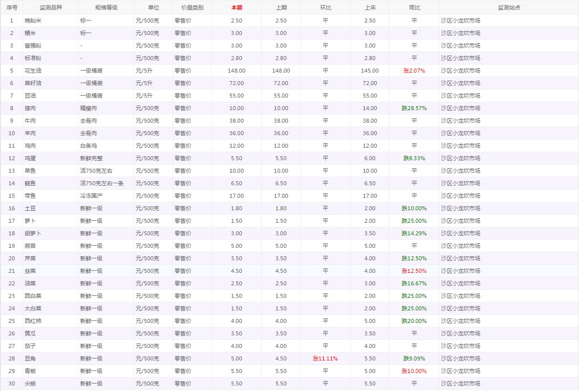粮油内禽蛋菜水产品等价格应急监测情况(小龙坎农贸市场)采价日期(2025年10月24日)