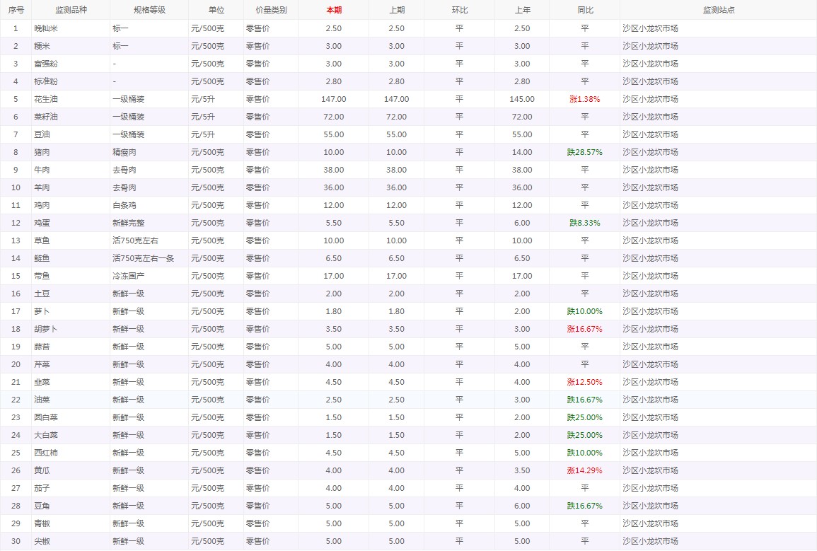粮油内禽蛋菜水产品等价格应急监测情况(小龙坎农贸市场)采价日期(2025年10月28日)