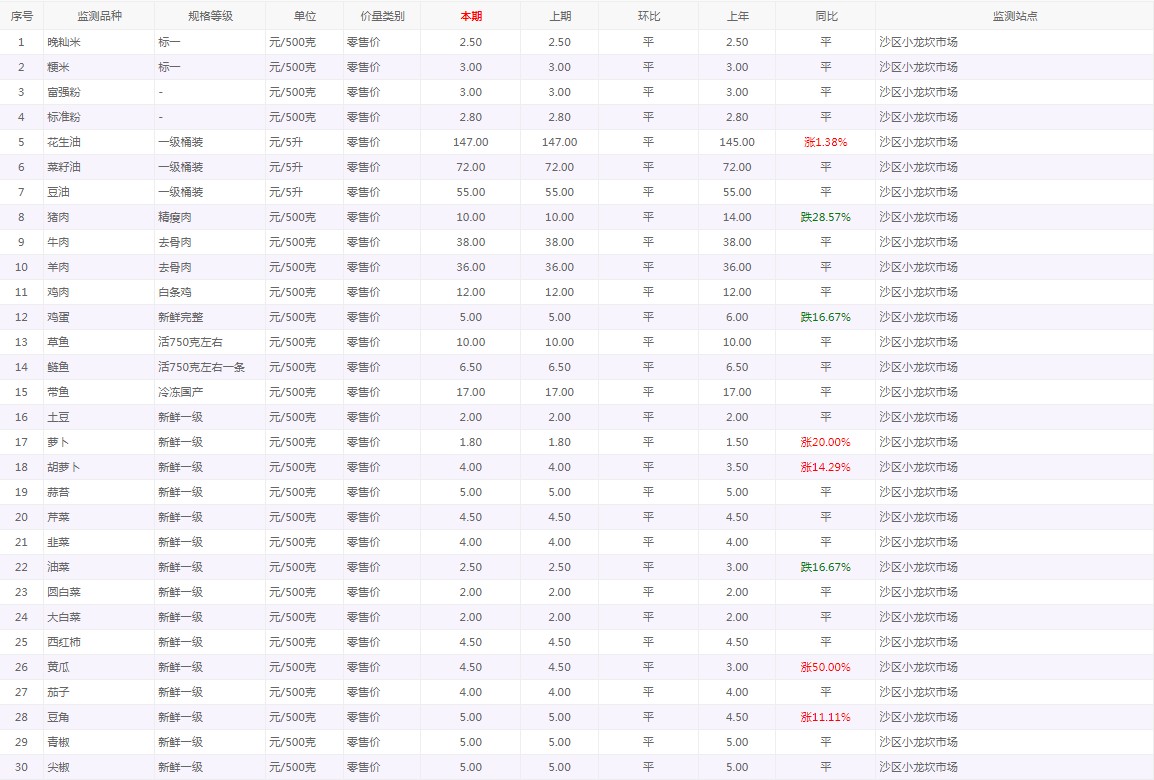 粮油内禽蛋菜水产品等价格应急监测情况(小龙坎农贸市场)采价日期(2025年11月4日)