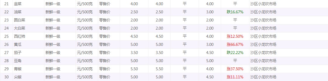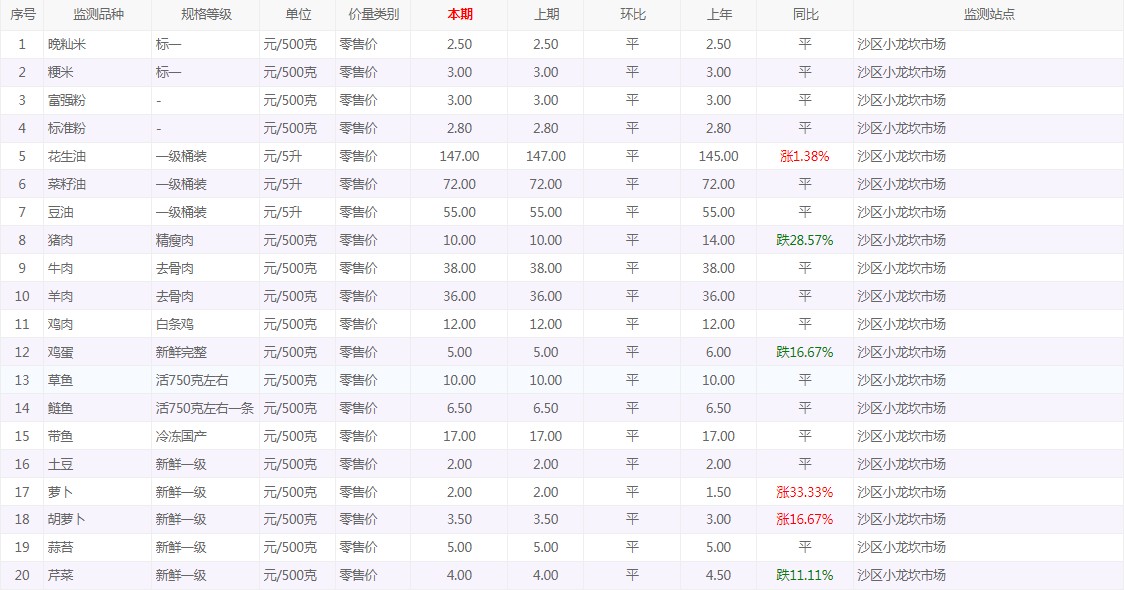 粮油内禽蛋菜水产品等价格应急监测情况(小龙坎农贸市场)采价日期(2025年11月11日)
