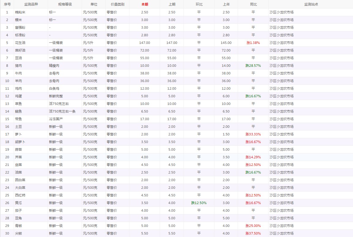 粮油内禽蛋菜水产品等价格应急监测情况(小龙坎农贸市场)采价日期(2025年11月14日)