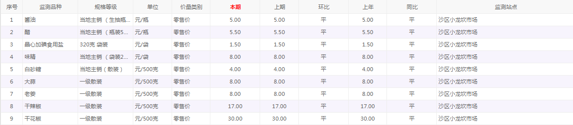调味品价格监测情况(沙区小龙坎农贸市场 采价日期:2025年12月25日)