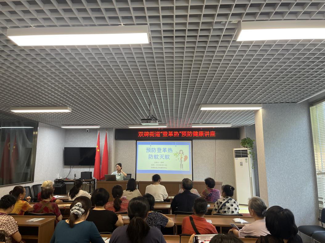为加强登革热疾病防控,近日,双碑街道联合双碑社区服务中心在自由村社区会议室开展了“登革热”防控知识讲座。