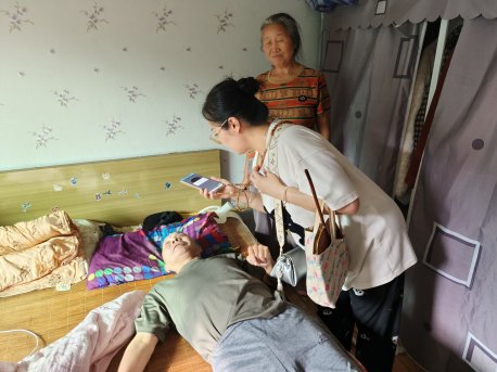9月17日上午,家住杨家山98-5-4的伍爷爷,因瘫痪在床,无法到社区来进行养老待遇资格认证,她的配偶打电话到社区来说明情况后希望社区工作人员能上门入户为其进行认证。