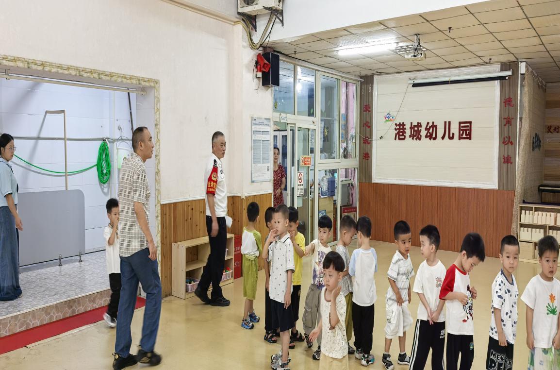 社区工作人员及社区民警来到港城幼儿园及蓝天幼儿园,实地排查了校园消防设施,查看灭火器、消防栓是否完好有效,应急通道是否畅通。核查校园安保配置,检查监控设备运行、保安值守及防护装备配备情况。