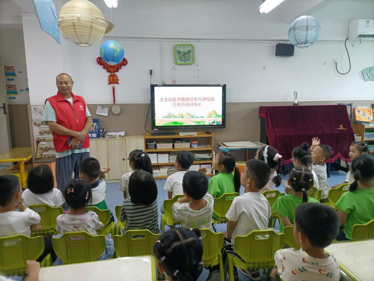 为缅怀先烈事迹,传承红色基因,厚植爱国主义情怀,土主街道召集5名退役老兵组建成一支宣讲团,联合辖区中、小学、幼儿园开展“退役老兵进校园,红色故事宣传活动。”