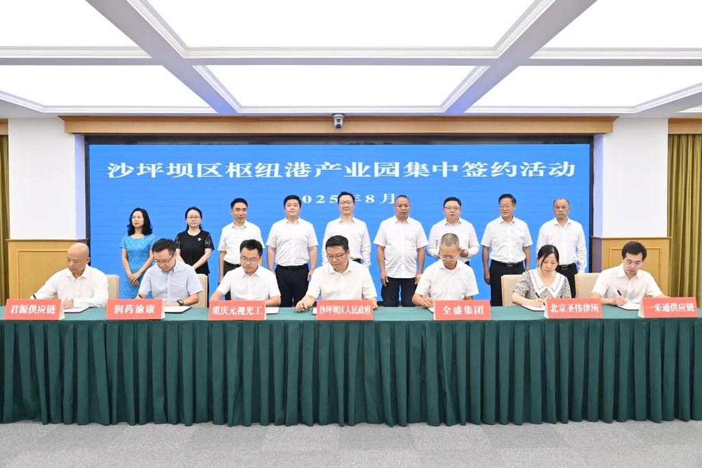 8月29日下午,沙坪坝区举行2025年8月枢纽港产业园集中签约活动。