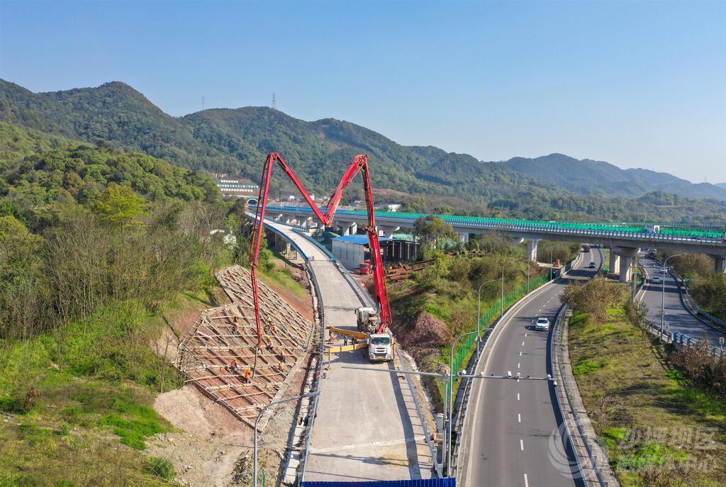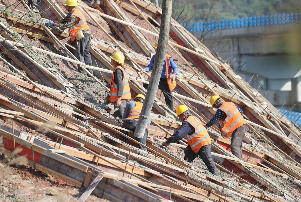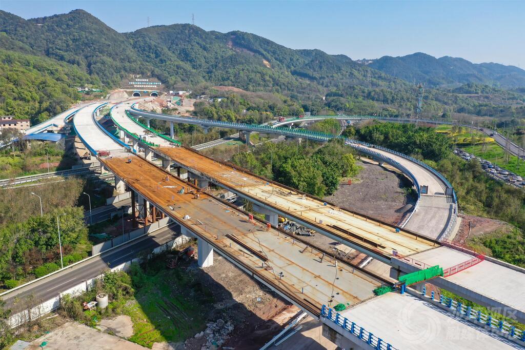 在科学城隧道内部,掌子面爆破开挖工作刚刚结束,渣土车频繁进出隧道运送开挖土石,工人穿戴防护设施小心谨慎开展落石排危工作。在另一处关键控制性工程红槽房立交建设现场,工人们正在加紧施工,桥面拓宽改造施工正在加紧进行。截至目前,项目一标段主体结构已完成,二标段隧道掘进累计完成88%,有望9月底实现双向隧道贯通。