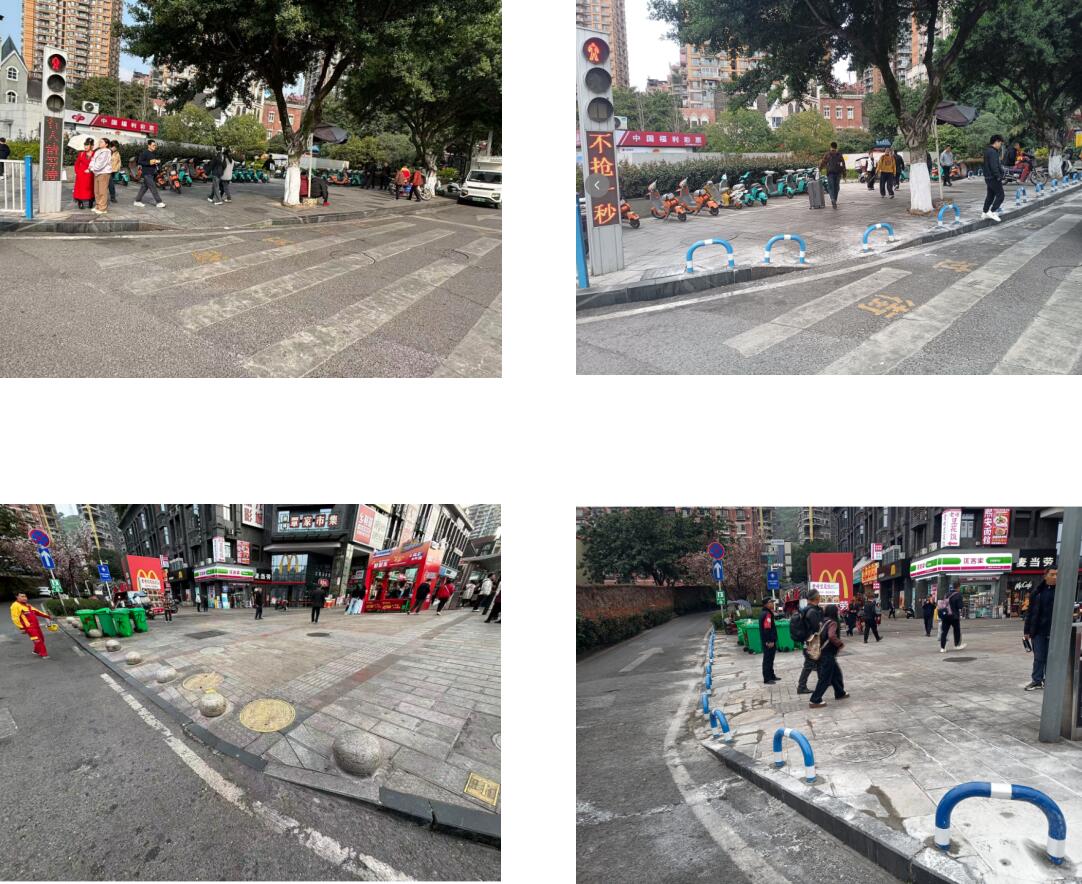 经与支队反复协商沟通,最终制定了安装U形桩方案。在确保不影响正常通车的情况下,施工人员沿道路逐点位进行施工,历时1天,凤天大道金阳易城国际区域安装了一排整齐的U形桩,将摊区与机动车辆通道隔离开,确保行人出行安全。