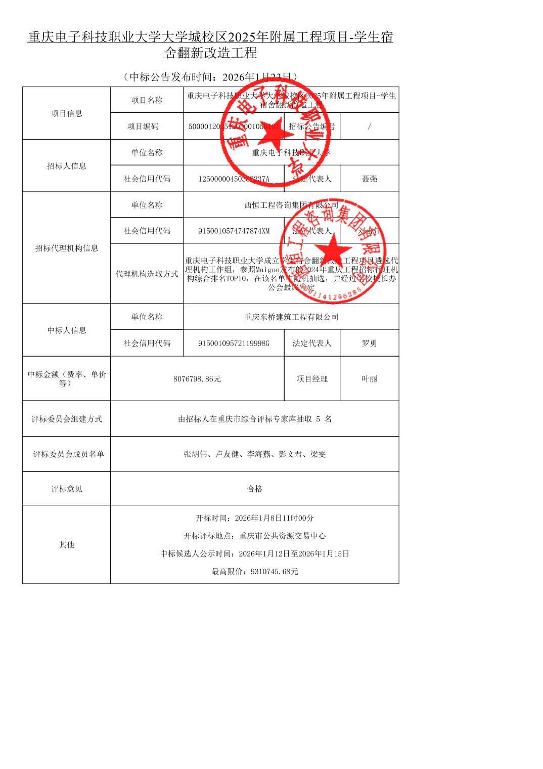 | 名称: | 重庆电子科技职业大学大学城校区2025年附属工程项目-学生宿舍翻新改造工程 | ||||
