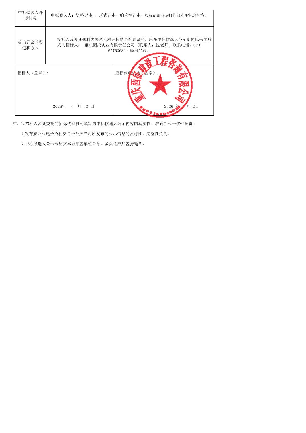 陆港智造城更新改造工程(一期)中标候选人公示表