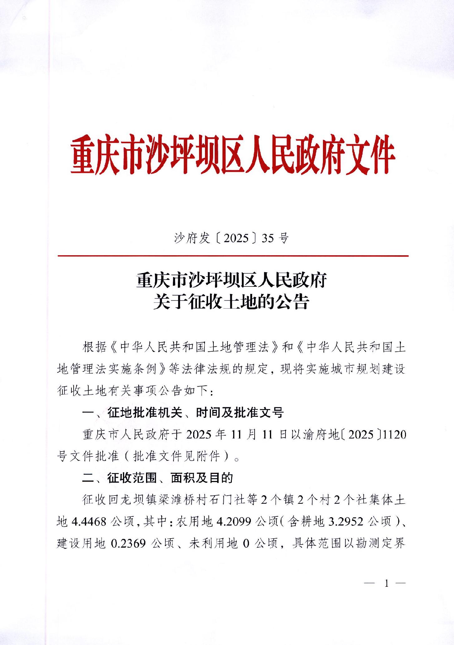 重庆市沙坪坝区人民政府关于征收土地的公告
