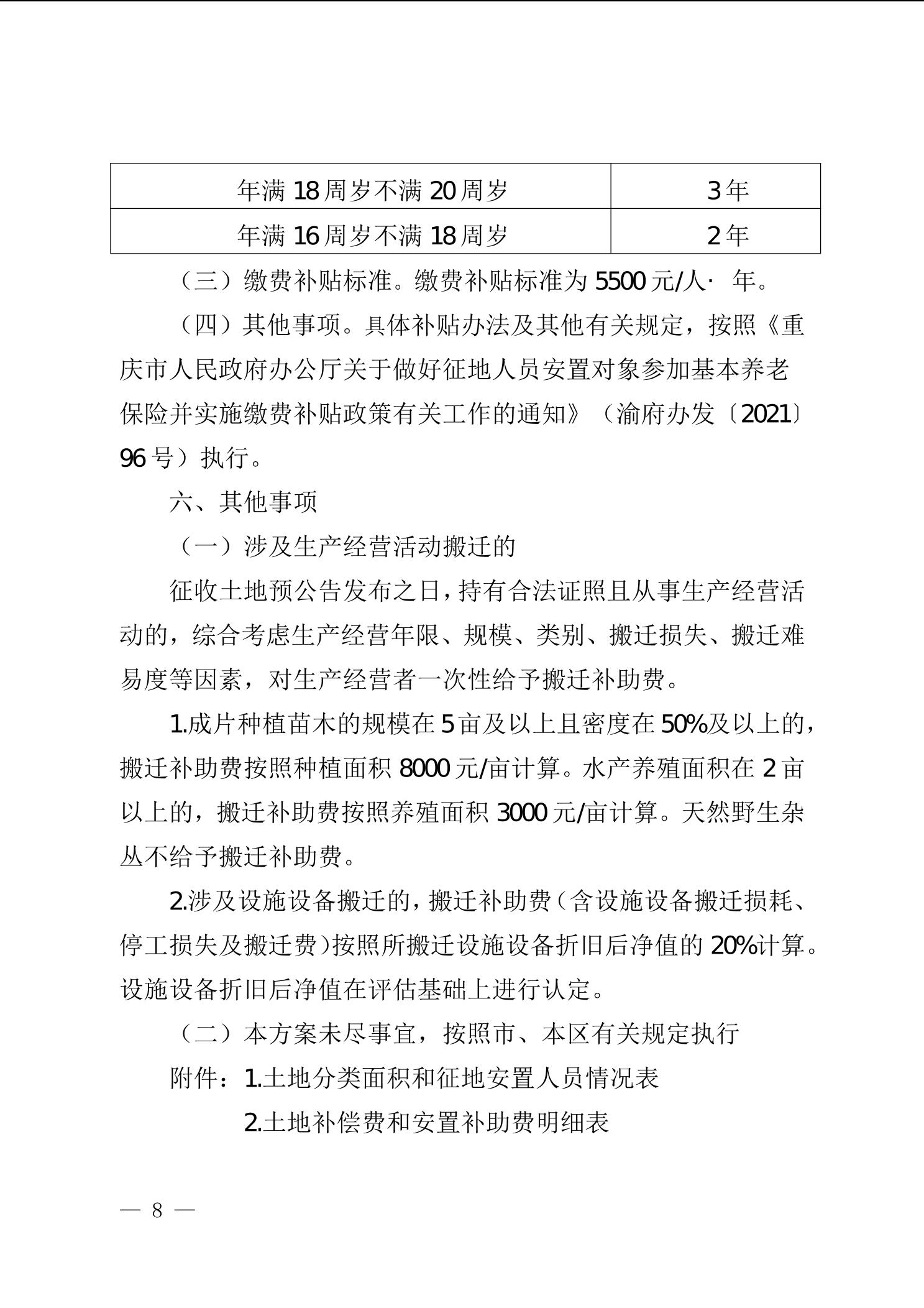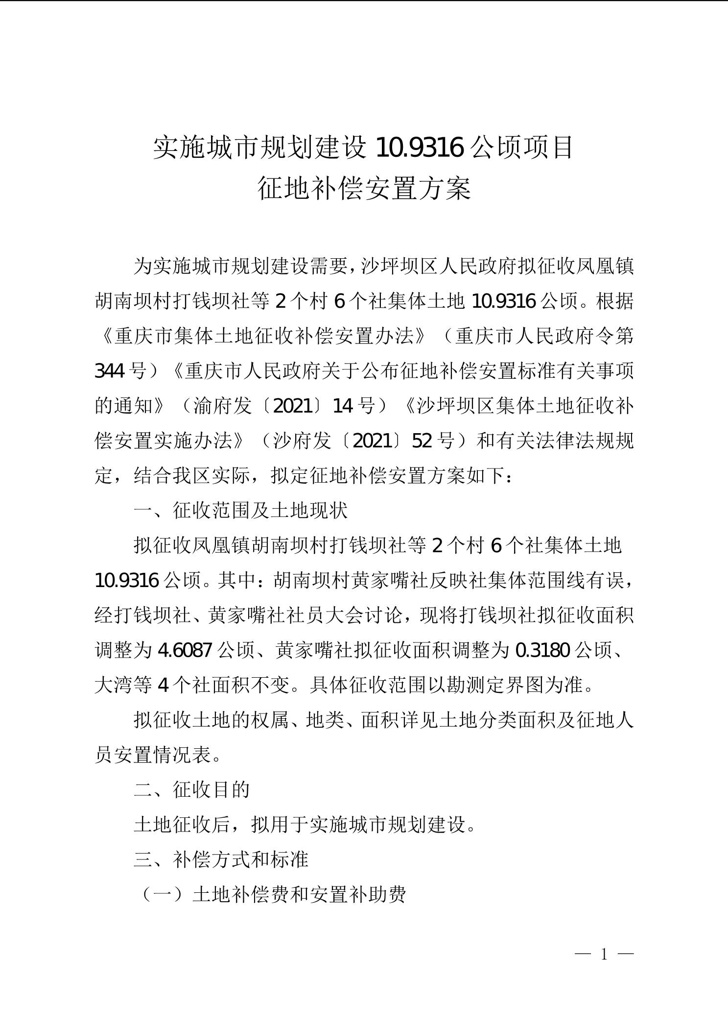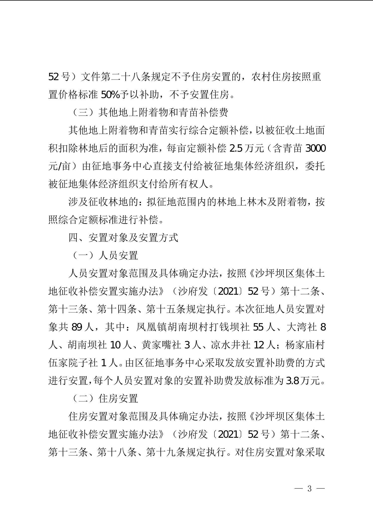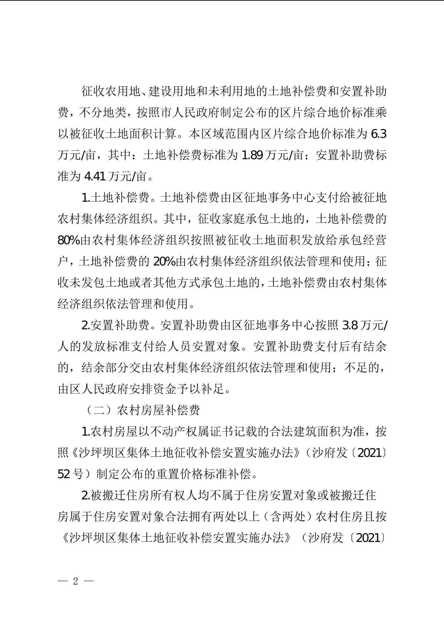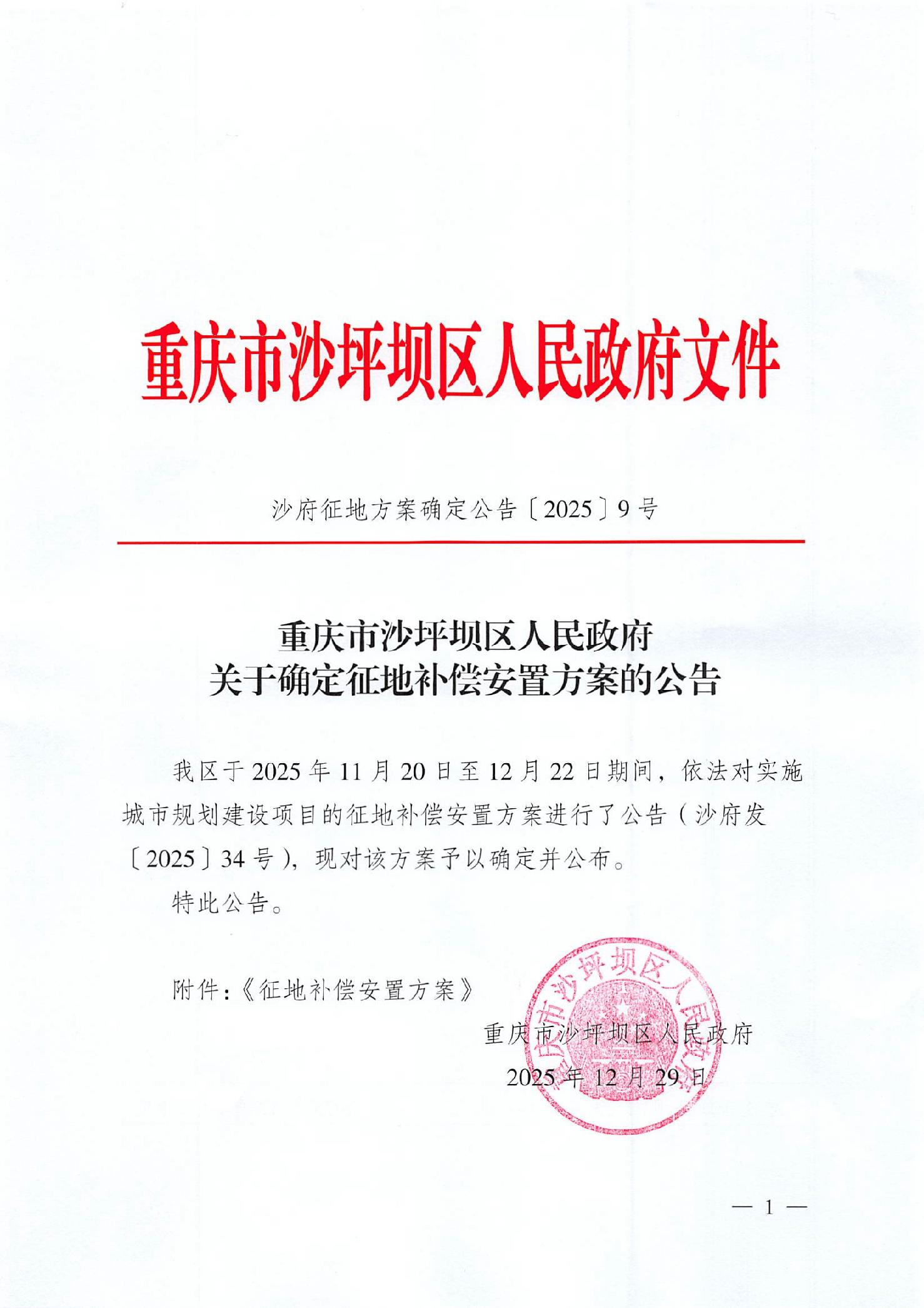 重庆市沙坪坝区人民政府关于确定征地补偿安置方案的公告