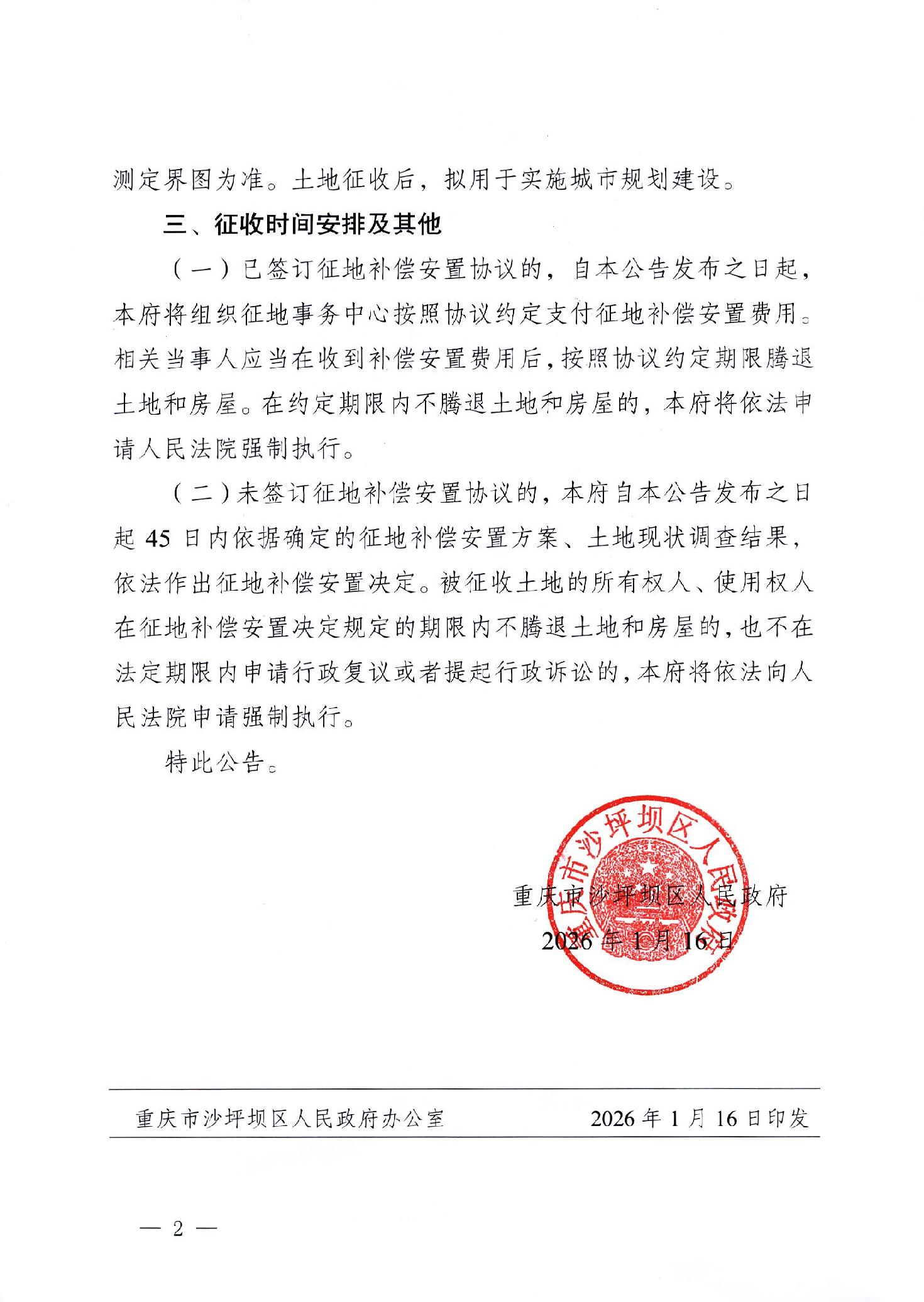 | 发布机构: | 沙坪坝区征地办 | 生成日期: | 2026-01-16 | 发布日期: | 2026-01-21 |