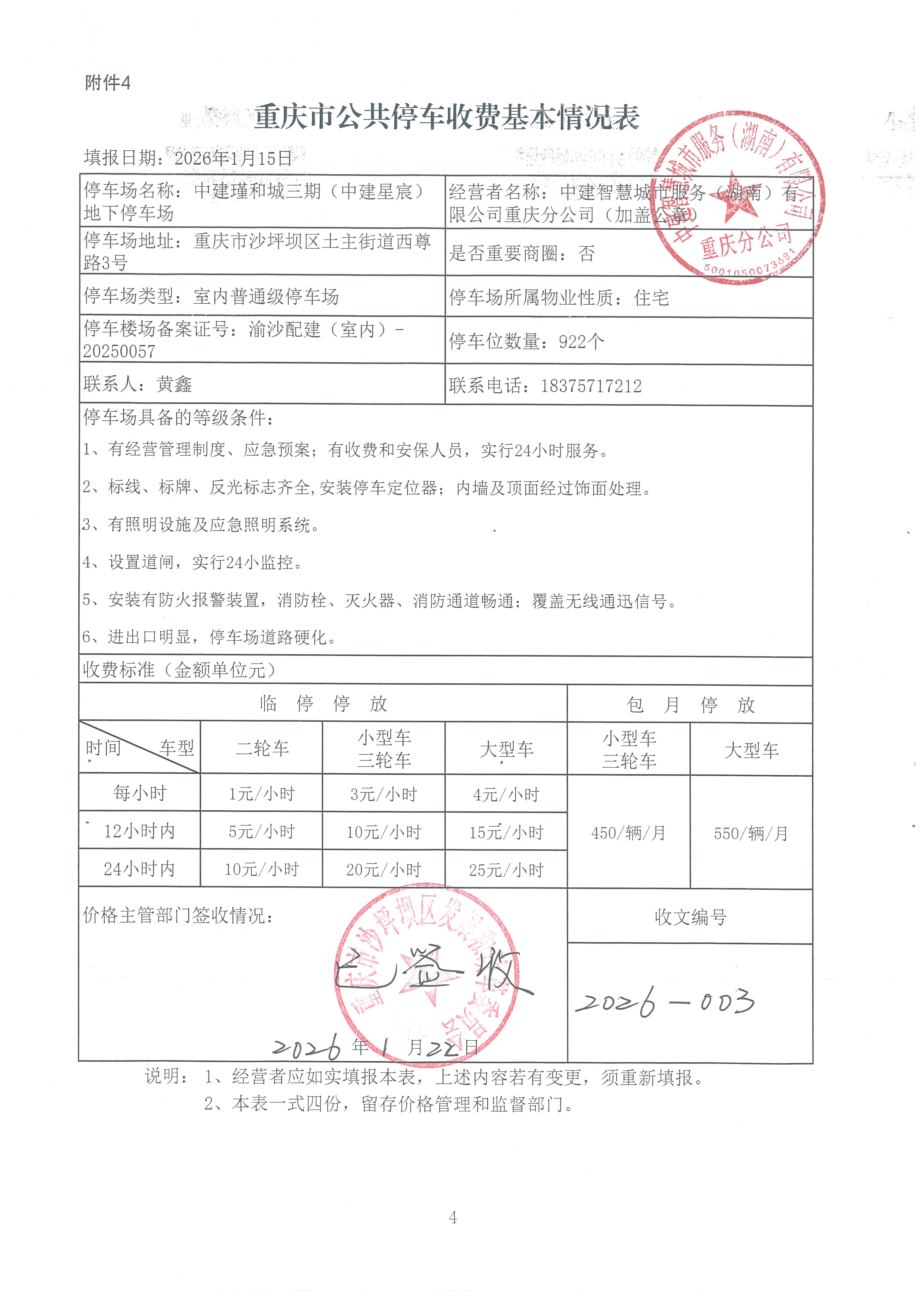 | 名称: | 中建瑾和城三期(中建星宸)地下公共停车场收费备案情况 | ||||
