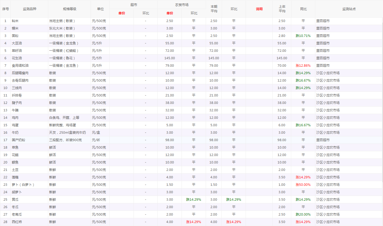 粮油内禽蛋菜水产品等价格应急监测信息(沙区小龙坎农贸市场)采价日期(2026年4月22日)