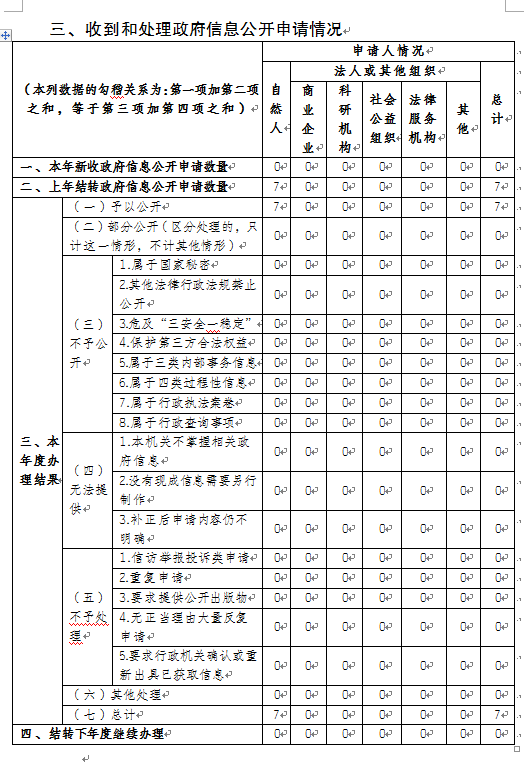 本报告按照《中华人民共和国政府信息公开条例》、《国务院办公厅政府信息与政务公开办公室关于政府信息公开工作年度报告有关事项的通知》、《重庆市人民政府办公厅关于做好政府信息公开工作年度报告有关工作的通知》要求,结合2019年沙坪坝区发展和改革委员会政府信息公开工作的实际情况编制。全文包括总体情况、主动公开政府信息情况、收到和处理政府信息公开申请情况、政府信息公开行政复议和行政诉讼情况、政府信息公开工作存在的主要问题及改进情况、其他需要报告的事项六部分。本报告中所列数据为累计统计,统计期为2020年1月1日起至2020年12月31日止。如对本报告有任何疑问,请与沙坪坝区发展和改革委员会联系(地址:重庆市沙坪坝区凤天大道8号,邮编:400038,联系电话:65368184,传真:65368281)。