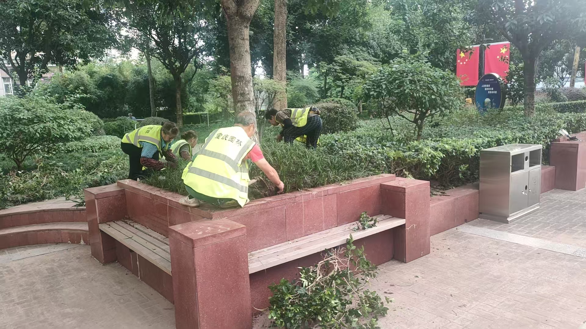 持续做好绿化环境打造,利用假期时间有序开展修剪、打药、浇水等绿化管护,枯枝落叶及时清扫,垃圾及时清运。