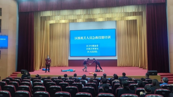近期,为提升区级机关工作人员应对突发事件和意外伤害的应急救援能力,区机关事务管理局联合区卫生健康委、区人民医院,在机关礼堂组织开展了机关人员急救技能专项培训。