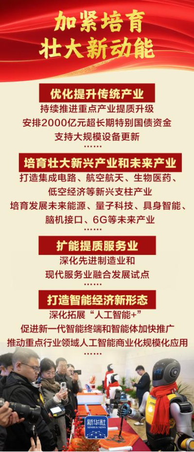 2026年政府工作报告提出的“加紧培育壮大新动能”成为社会热议的话题。从“优化提升传统产业”“培育壮大新兴产业和未来产业”,到“扩能提质服务业”“打造智能经济新形态”,政府工作报告里的一系列新提法、新部署勾勒出向“新”而行培育新动能的路径。