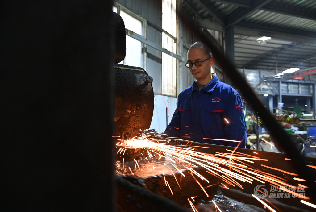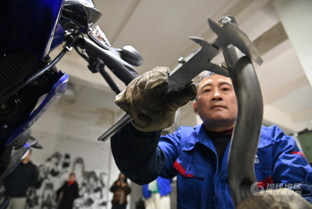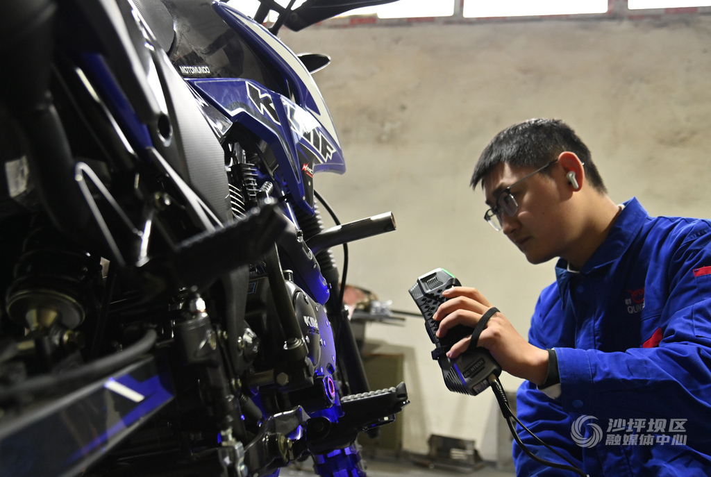 (沙磁荟-沙坪坝融媒 记者 孙凯芳 摄影报道)12月12日,沙坪坝区青木关镇关口村的重庆游群伟机械制造有限公司,研发人员正在使用激光扫描仪对车辆外观进行扫描,捕捉车辆外形轮廓,进行摩托车保险杠产品等外观设计。