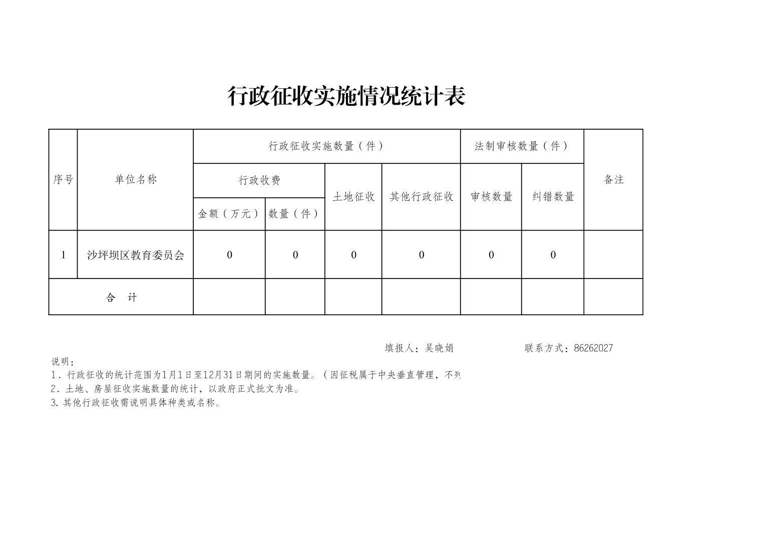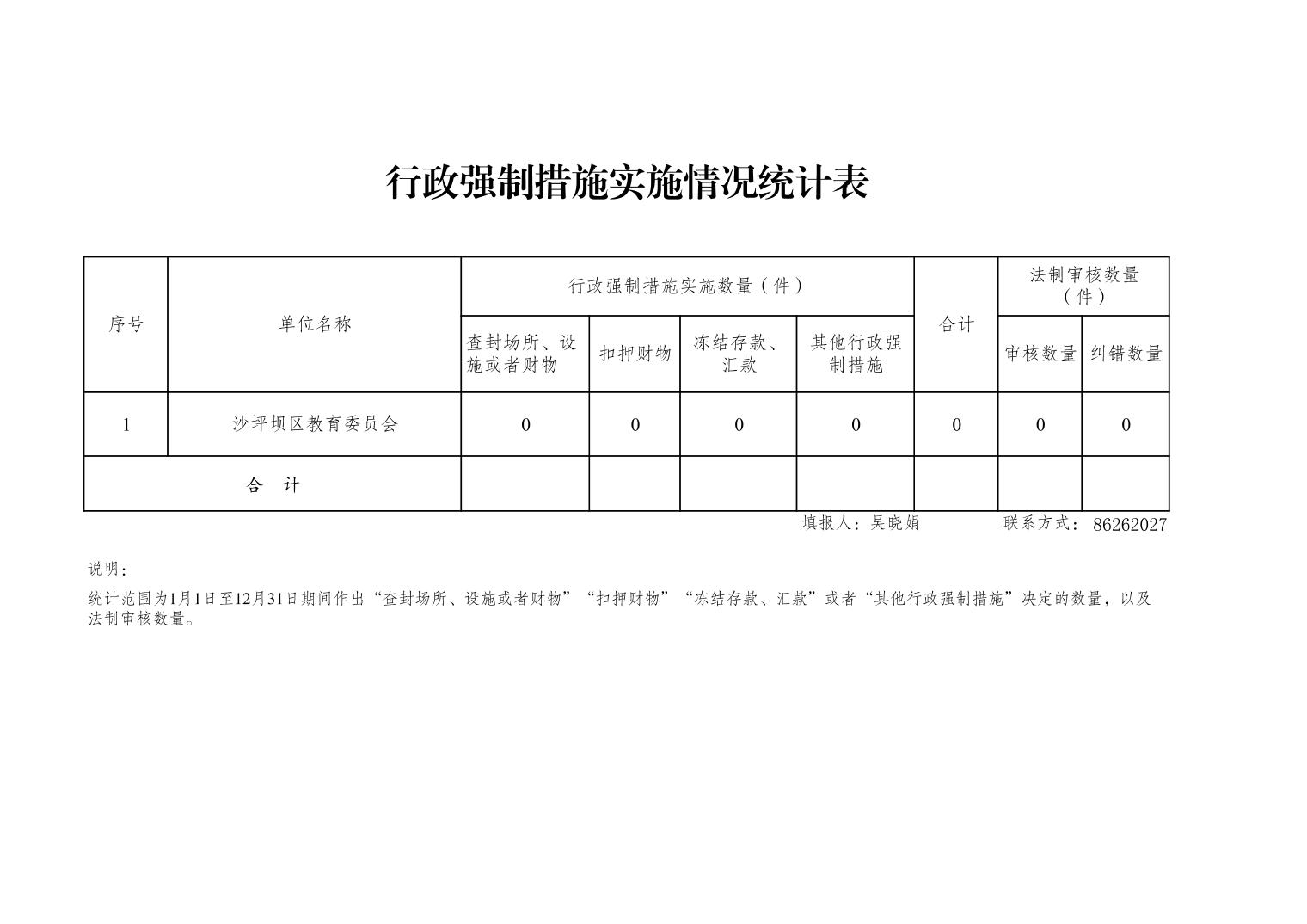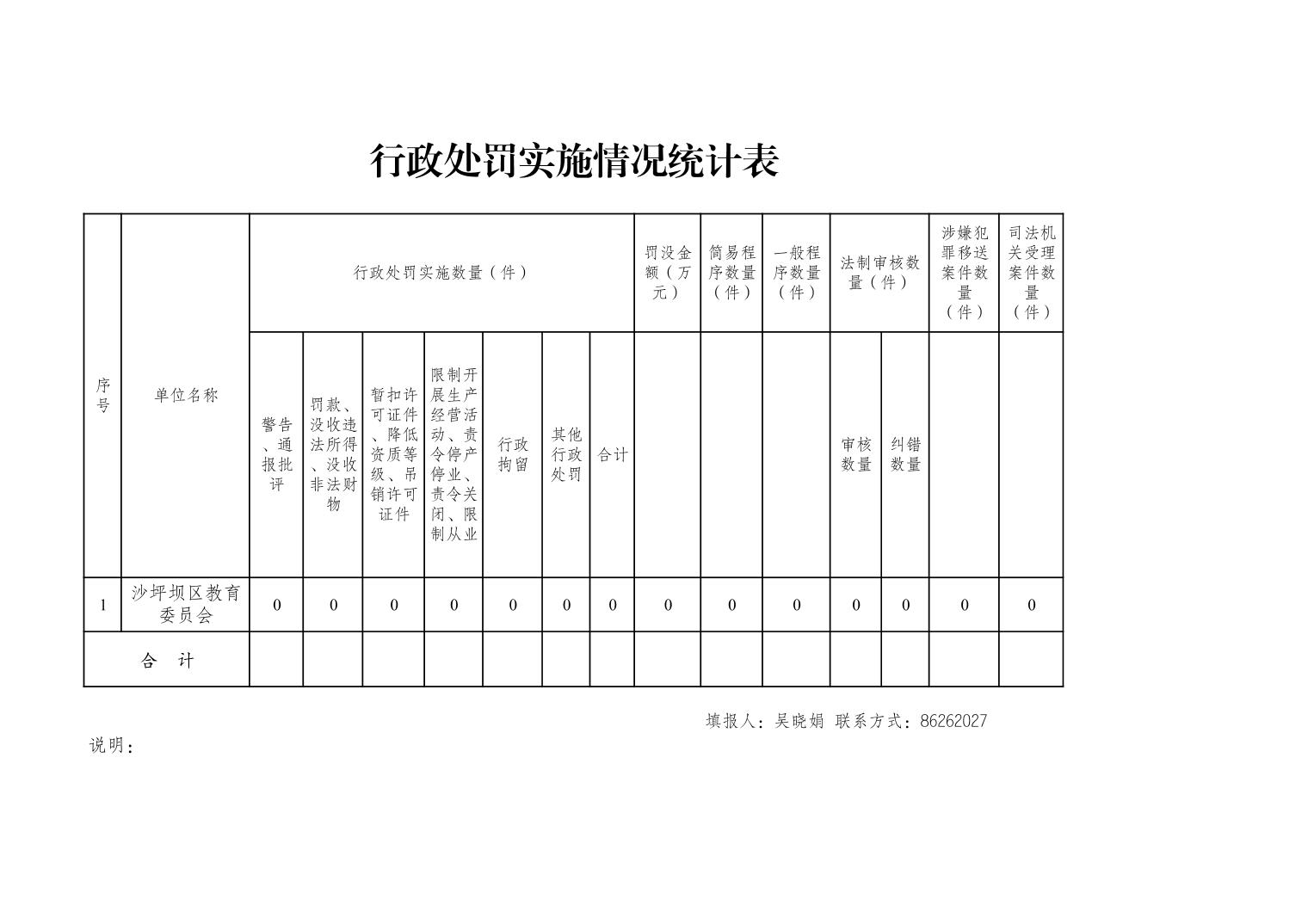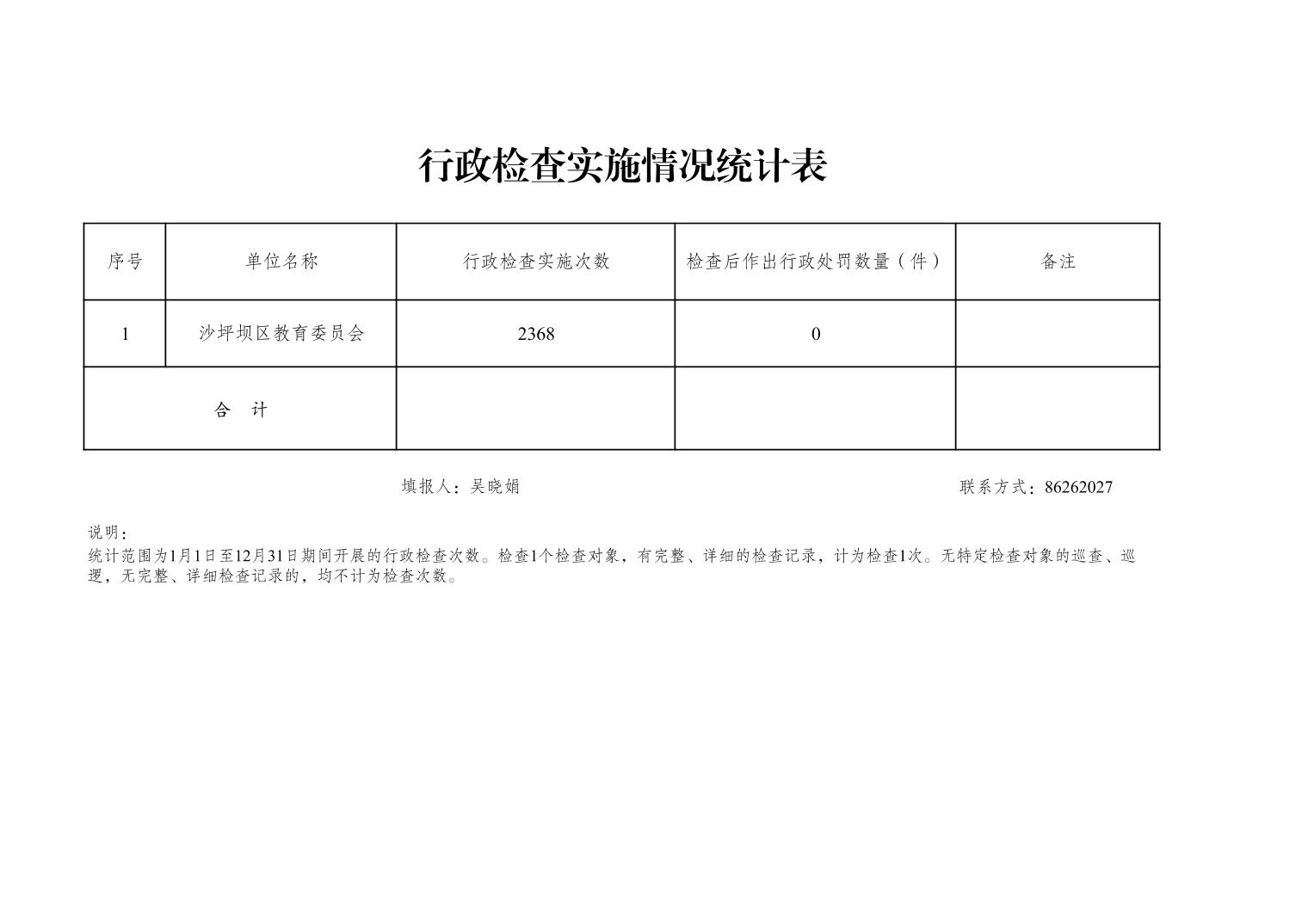 | 名称: | 重庆市沙坪坝区教育委员会2022年度行政执法数据统计表 | ||||
