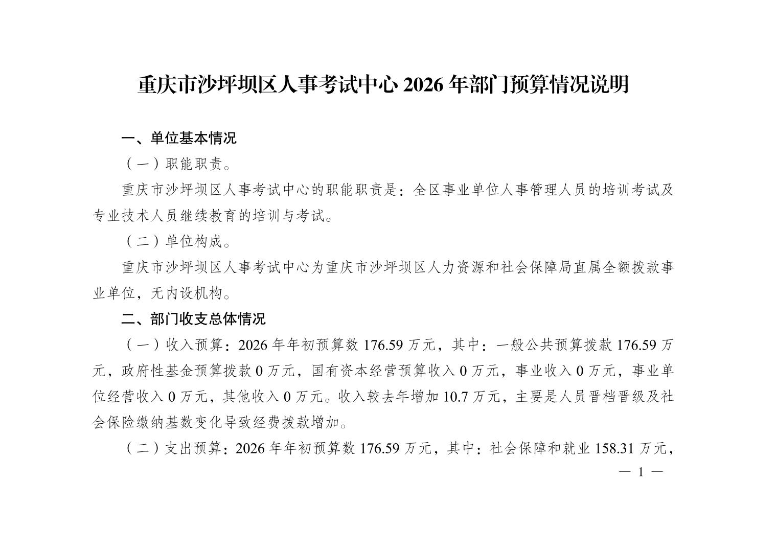 | 名称: | 重庆市沙坪坝区人事考试中心2026年部门预算情况说明 | ||||