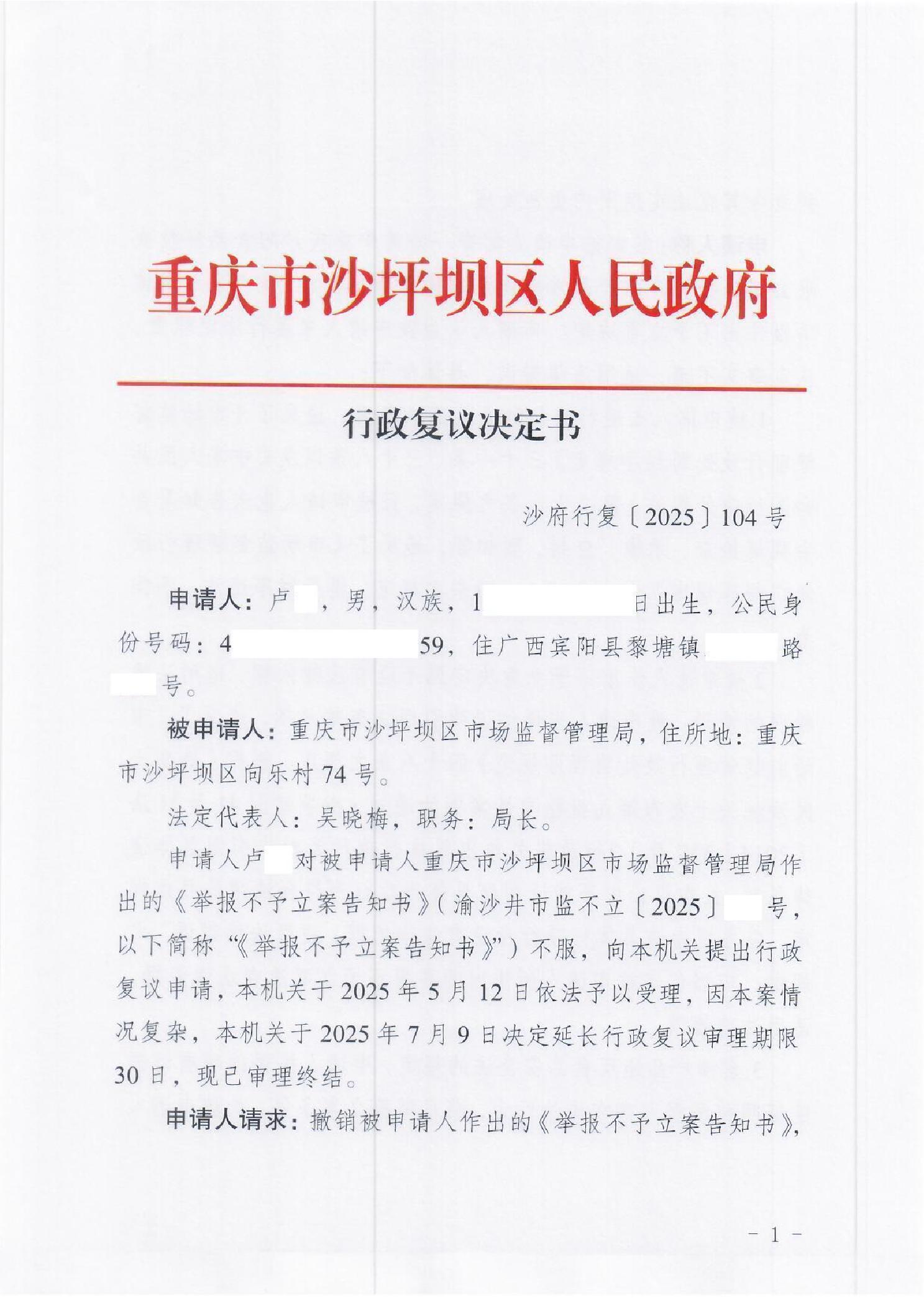 沙府行复〔2025〕104号
