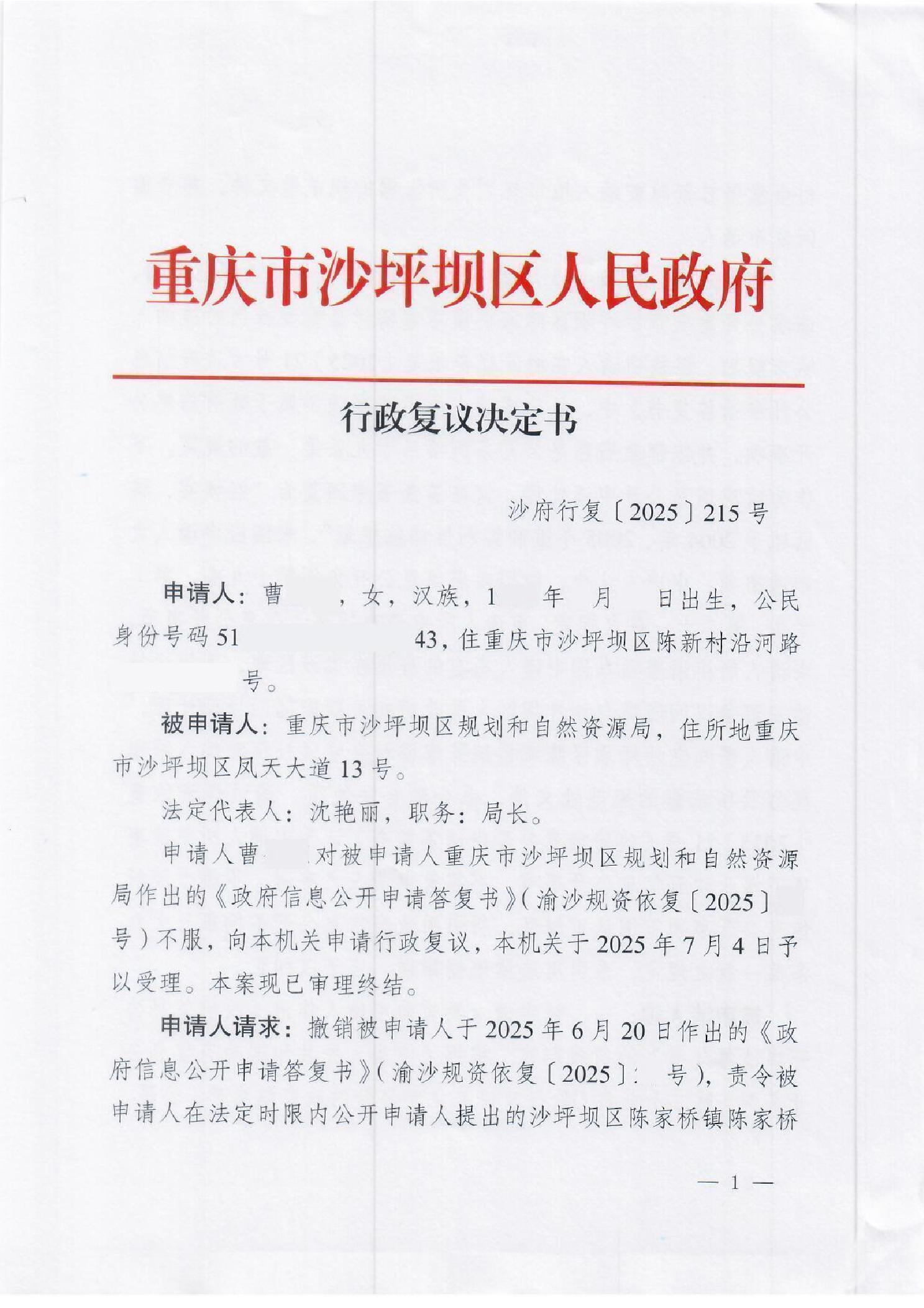 沙府行复[2025]215号