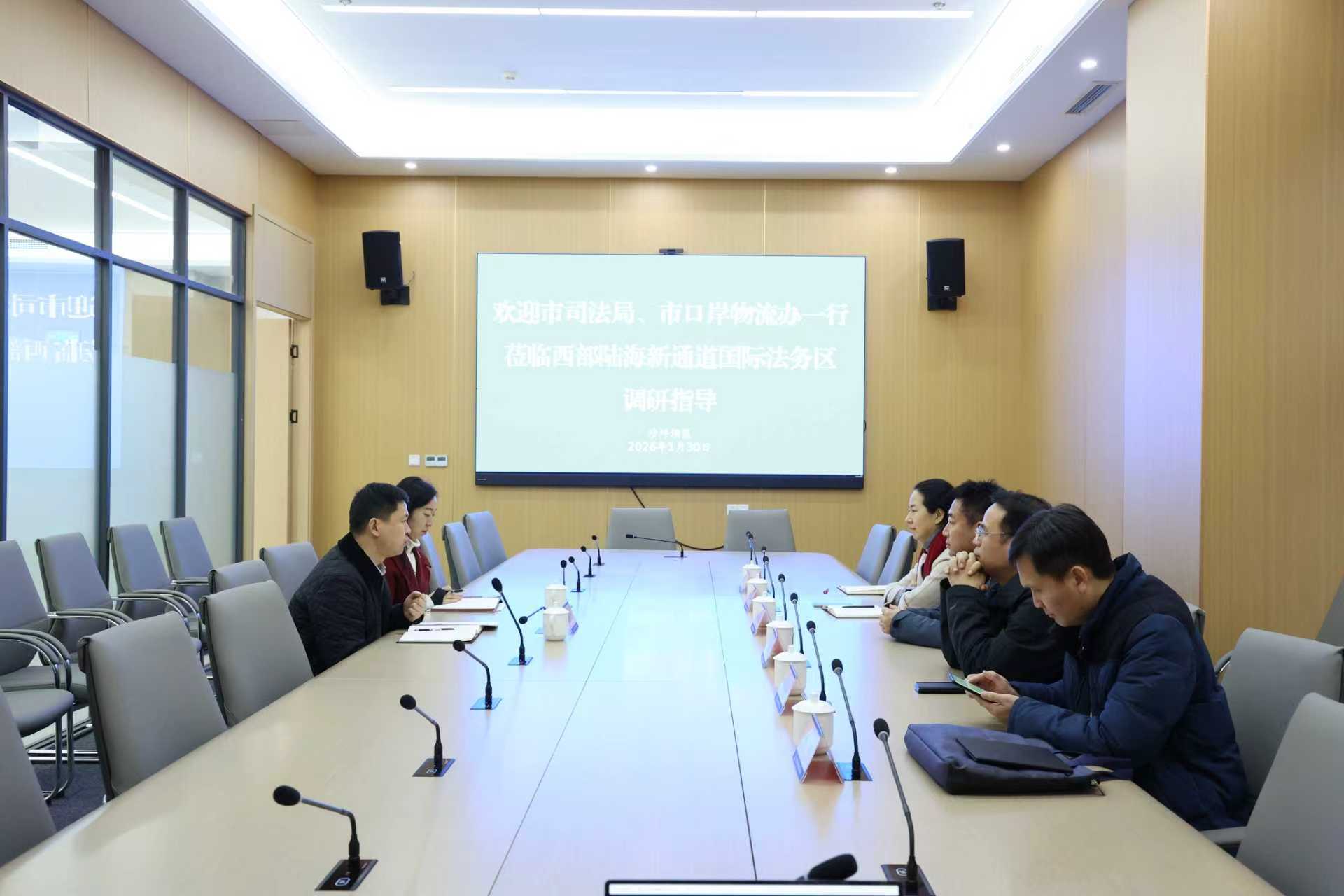 1月30日,重庆市司法局、市政府口岸和物流办公室联合组成调研组,赴沙坪坝区西部陆海新通道国际法务区开展实地调研并召开专题会议,指导法务区下一阶段建设与发展工作。