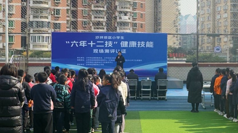 近日,沙坪坝区覃家岗小学操场上,四年级学生易榆煊分享着测评内容。当日,该校“六年十二技”健康技能现场测评认证活动正式举行,近千名学生通过实操演练、知识问答等形式,比拼健康“硬技能”,在实践中夯实守护自身健康的基础。