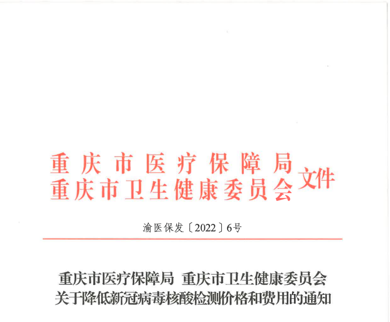 重庆市医疗保障局 重庆市卫生健康委员会关于降低新冠病毒核酸检测价格和费用的通知