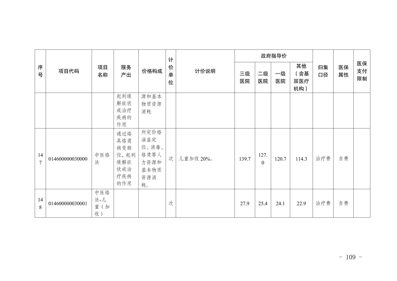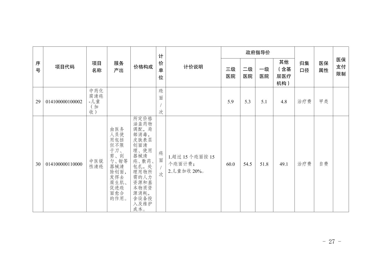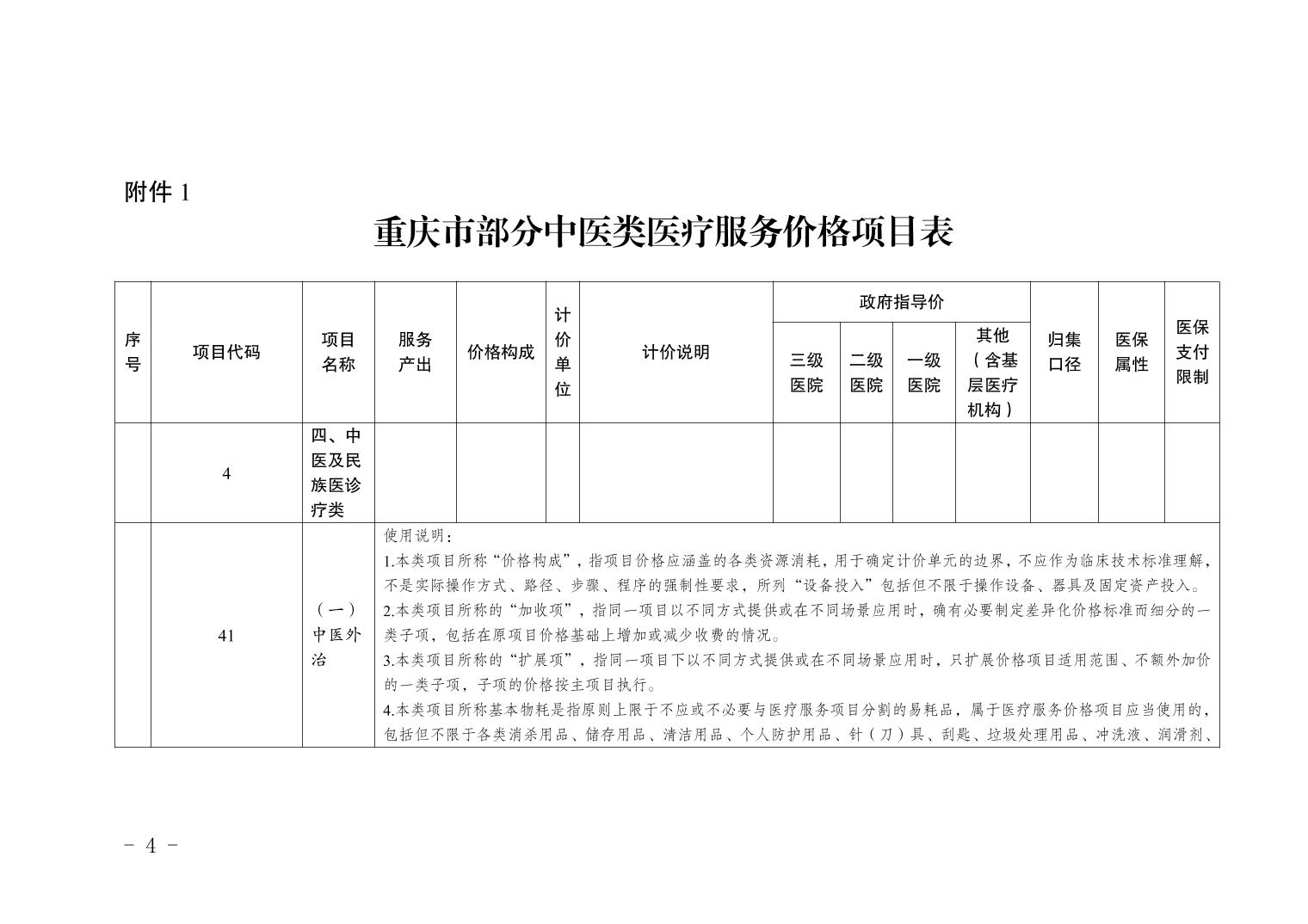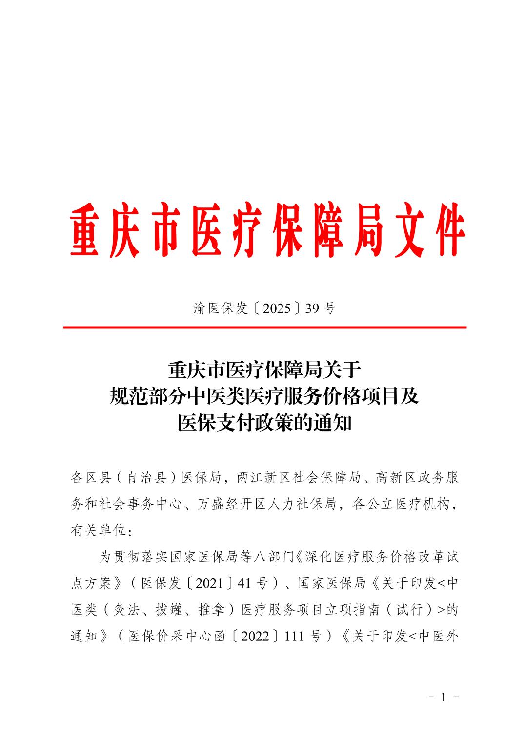 重庆市医疗保障局 关于规范部分中医类医疗服务价格项目及医保支付政策的通知