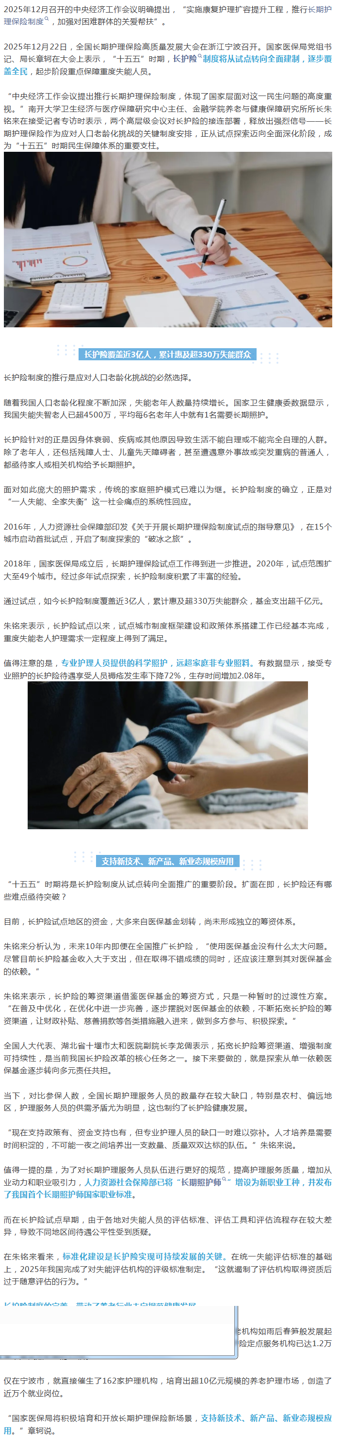 2026民生关键词|推行长护险制度 织密失能人员保障网