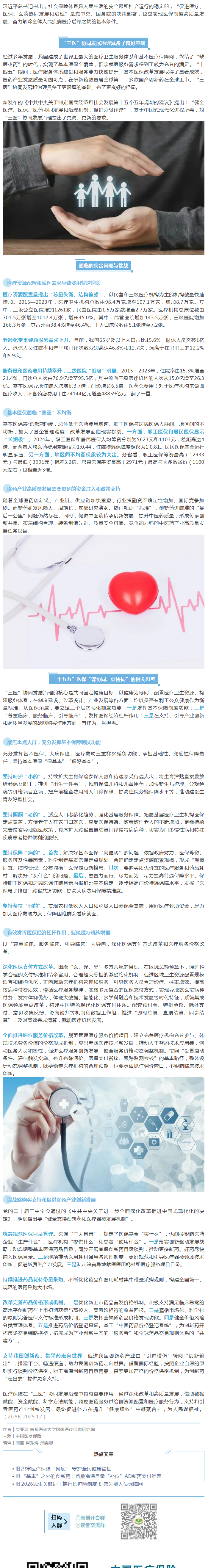 以全民健康目标 引领“三医”向更协同迈进