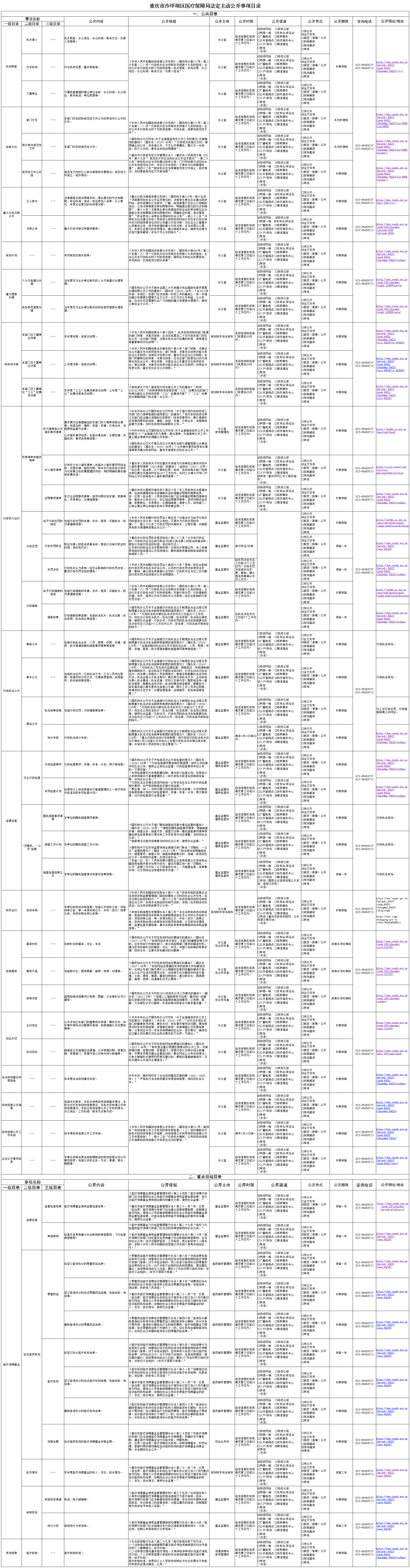 重庆市沙坪坝区医疗保障局法定主动公开事项目录(图片浏览版)
