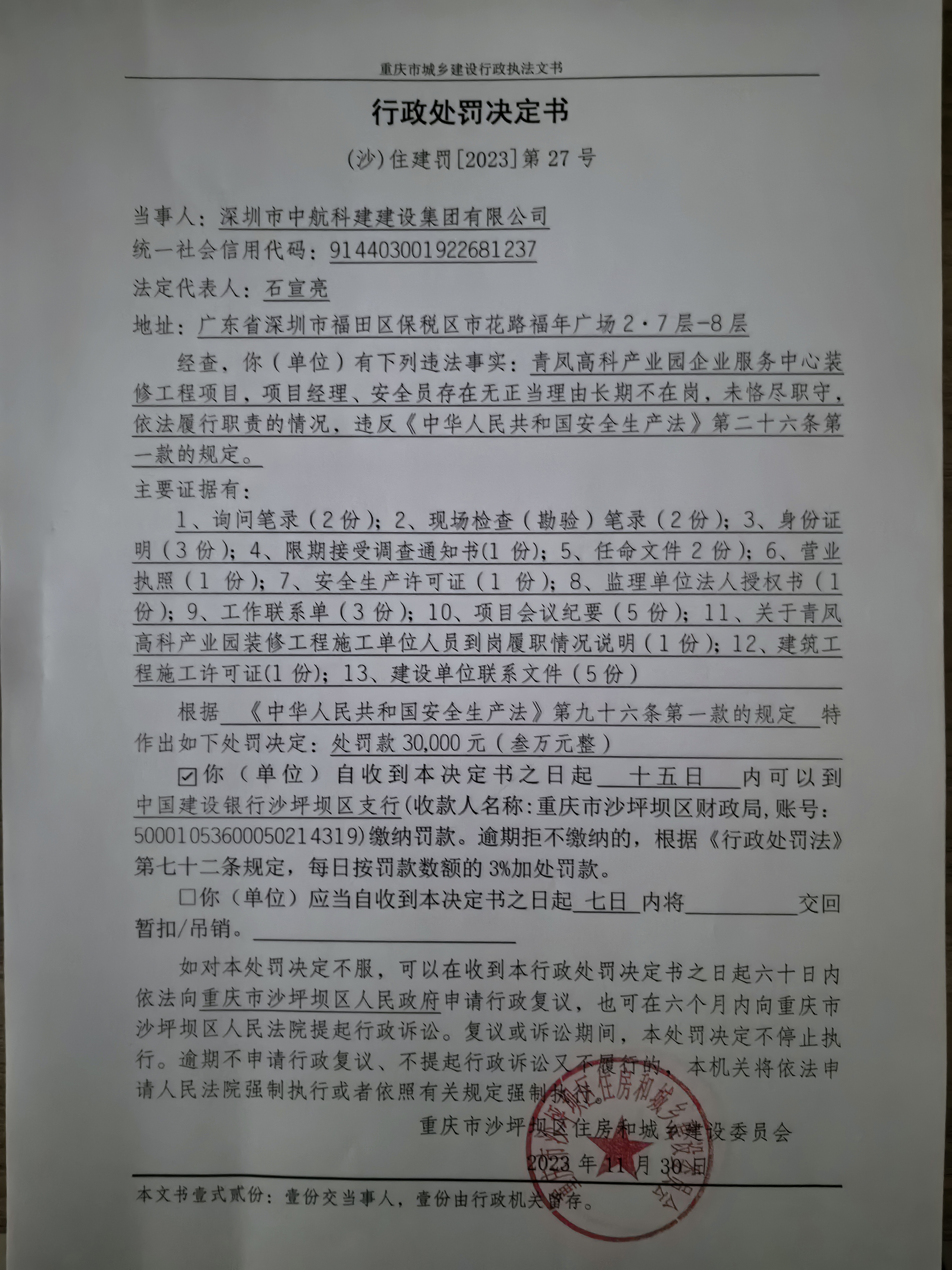 | 名称: | 区住房城乡建委行政处罚决定书(沙)住建罚【2023】第27号 | ||||