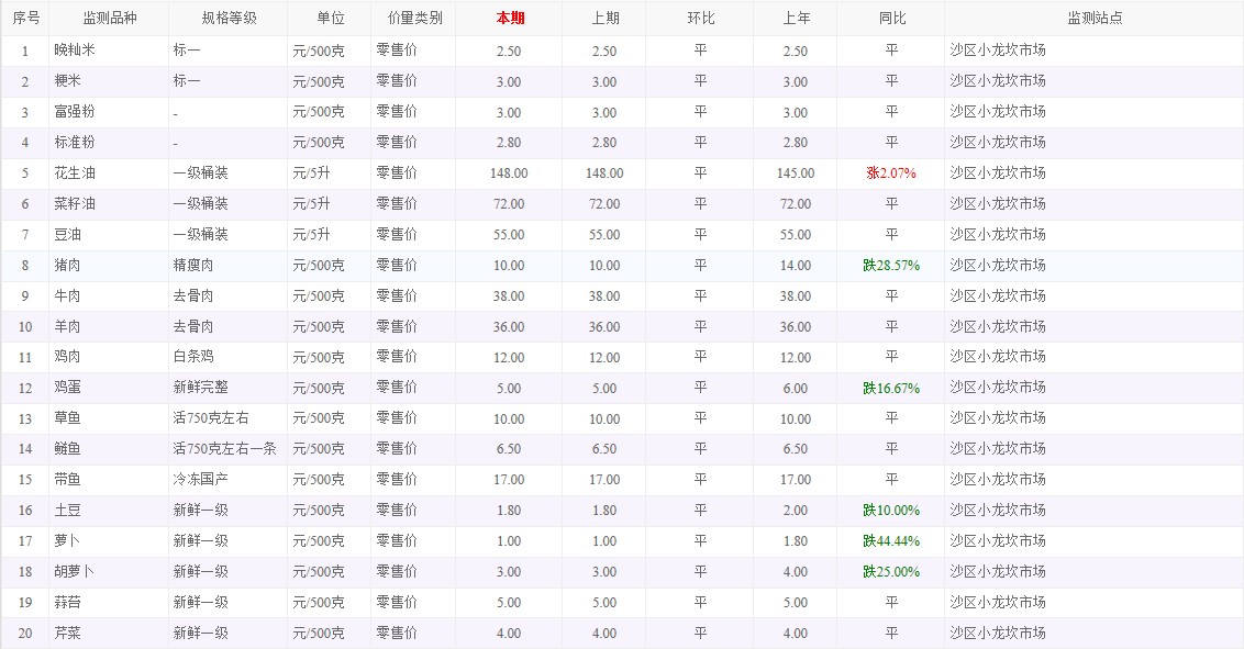 粮油内禽蛋菜水产品等价格应急监测情况(小龙坎农贸市场)采价日期(2025年9月28日)