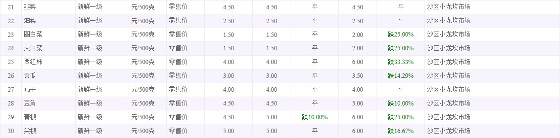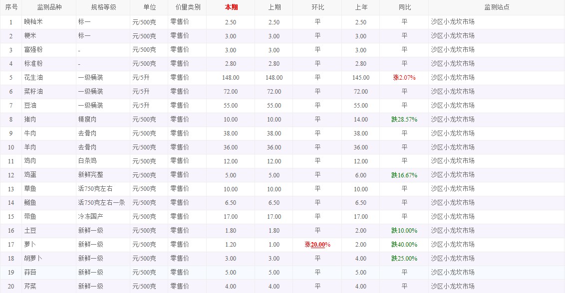 粮油内禽蛋菜水产品等价格应急监测情况(小龙坎农贸市场)采价日期(2025年9月30日)