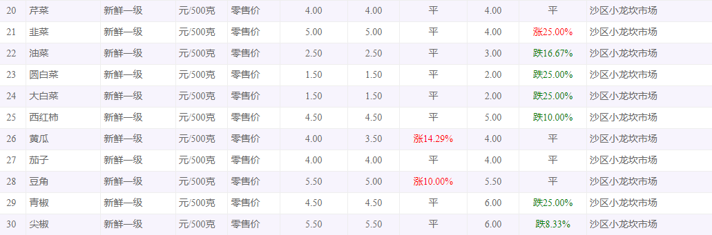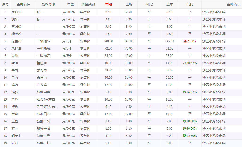 粮油内禽蛋菜水产品等价格应急监测情况(小龙坎农贸市场)采价日期(2025年10月10日)
