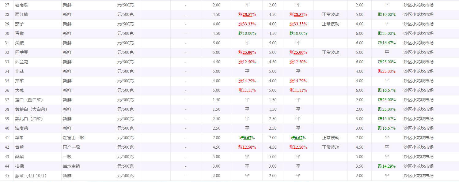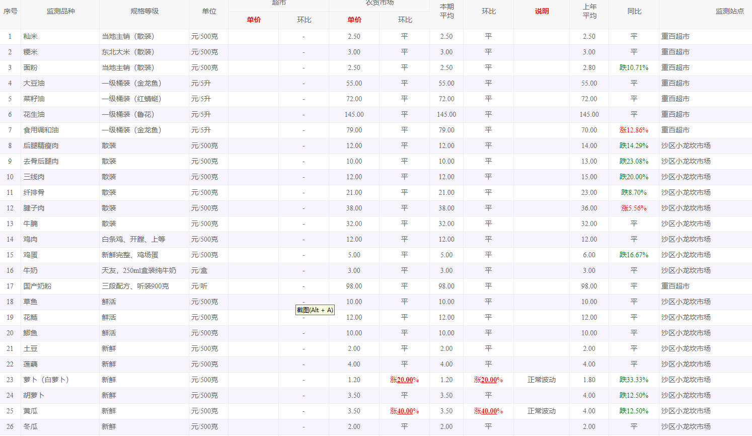 粮油内禽蛋菜水产品等价格应急监测信息(重百超市、小龙坎农贸市场)采价日期(2025年10月9日)