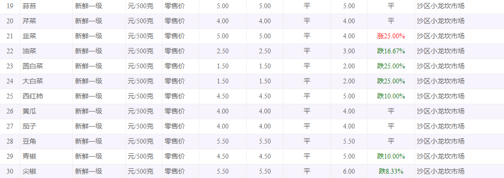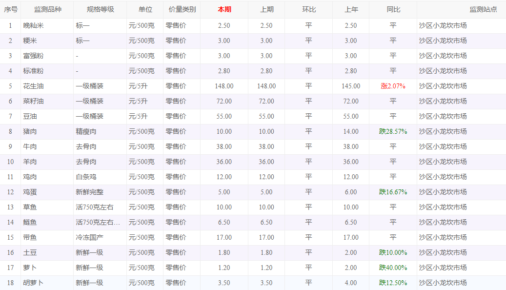 粮油内禽蛋菜水产品等价格应急监测情况(小龙坎农贸市场)采价日期(2025年10月11日)