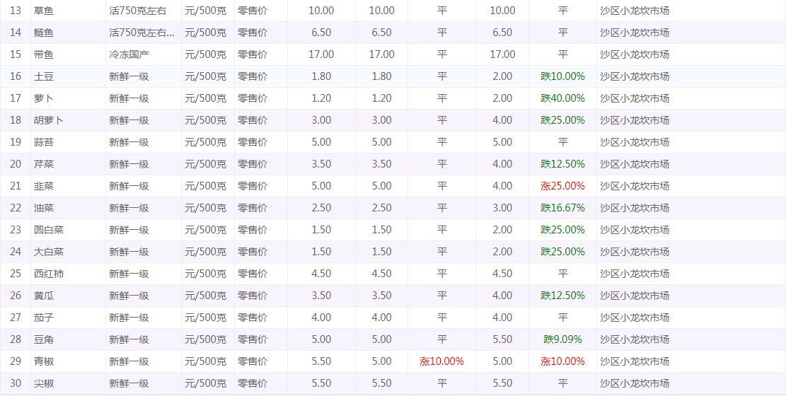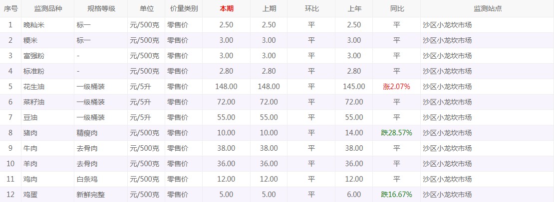 粮油内禽蛋菜水产品等价格应急监测情况(小龙坎农贸市场)采价日期(2025年10月14日)