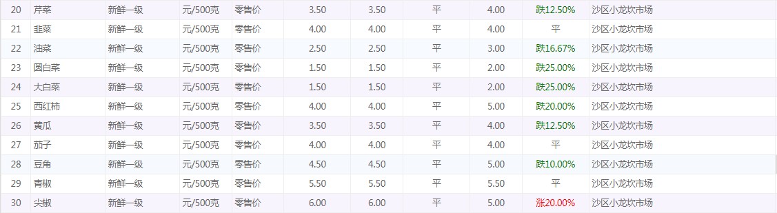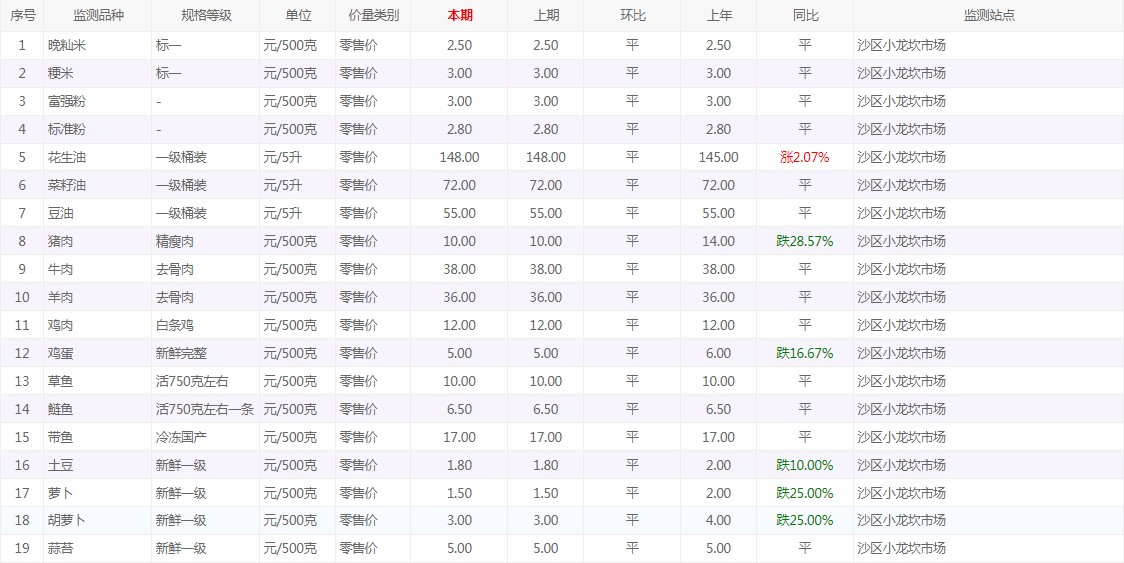 粮油内禽蛋菜水产品等价格应急监测情况(小龙坎农贸市场)采价日期(2025年10月21日)
