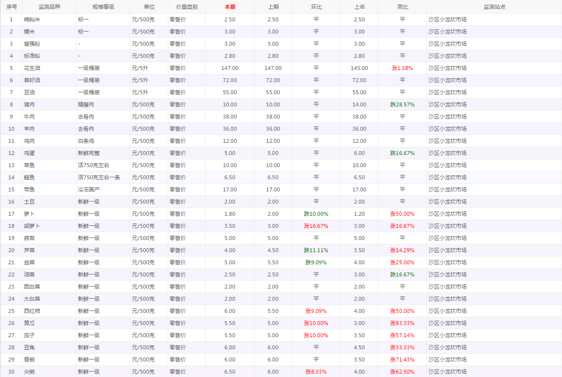 粮油内禽蛋菜水产品等价格应急监测情况(小龙坎农贸市场)采价日期(2025年12月5日)