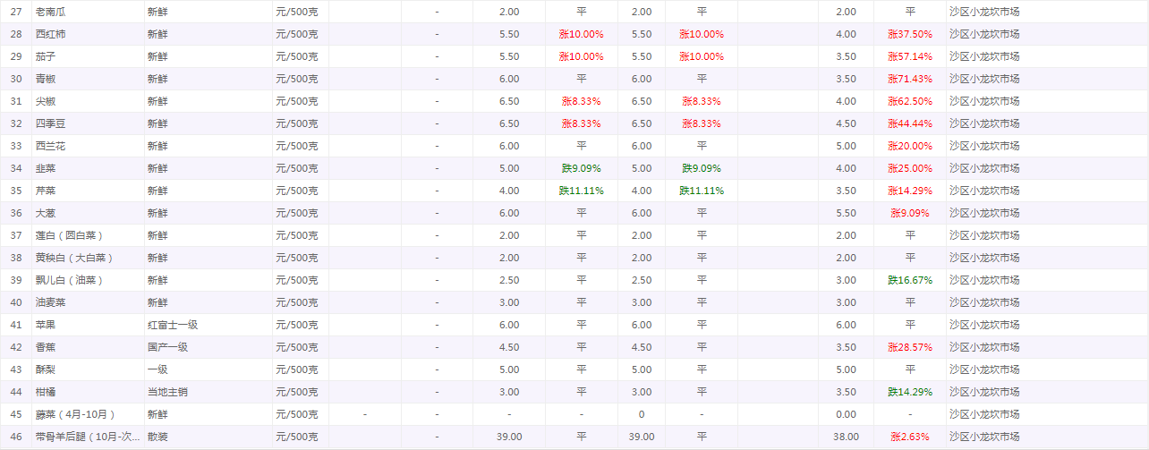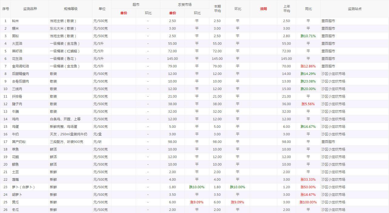 粮油内禽蛋菜水产品等价格应急监测情况(重百超市、小龙坎农贸市场)采价日期(2025年12月10日)